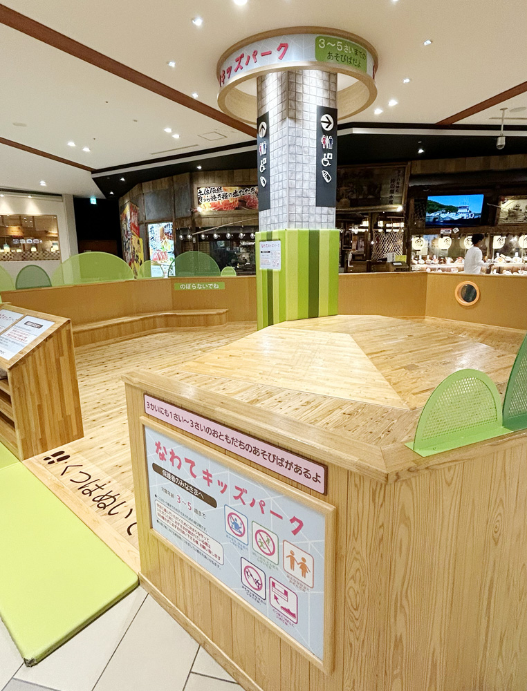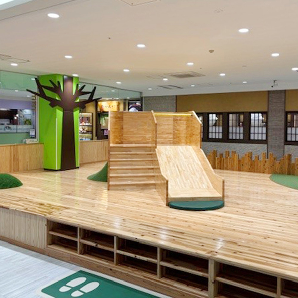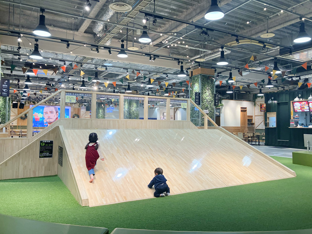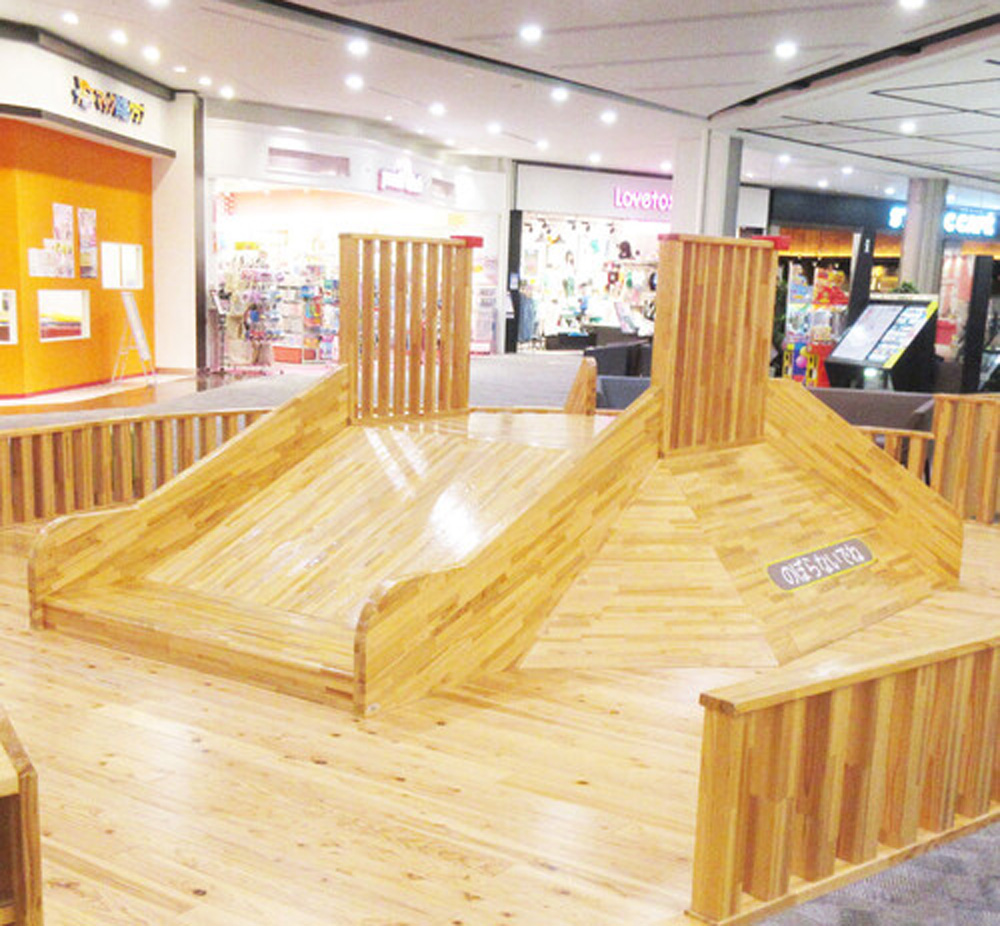 フードコートにある木製すべり台が人気!